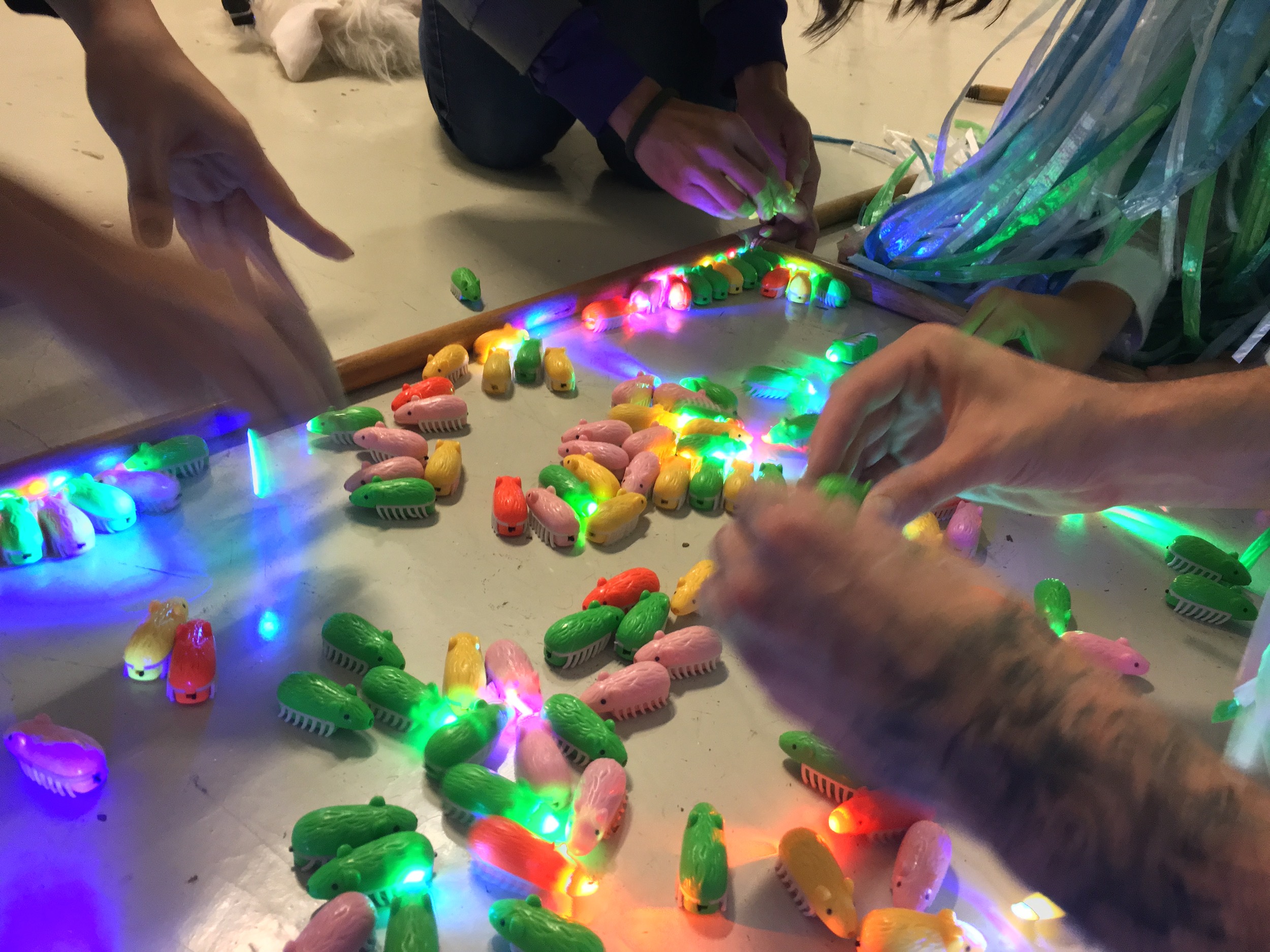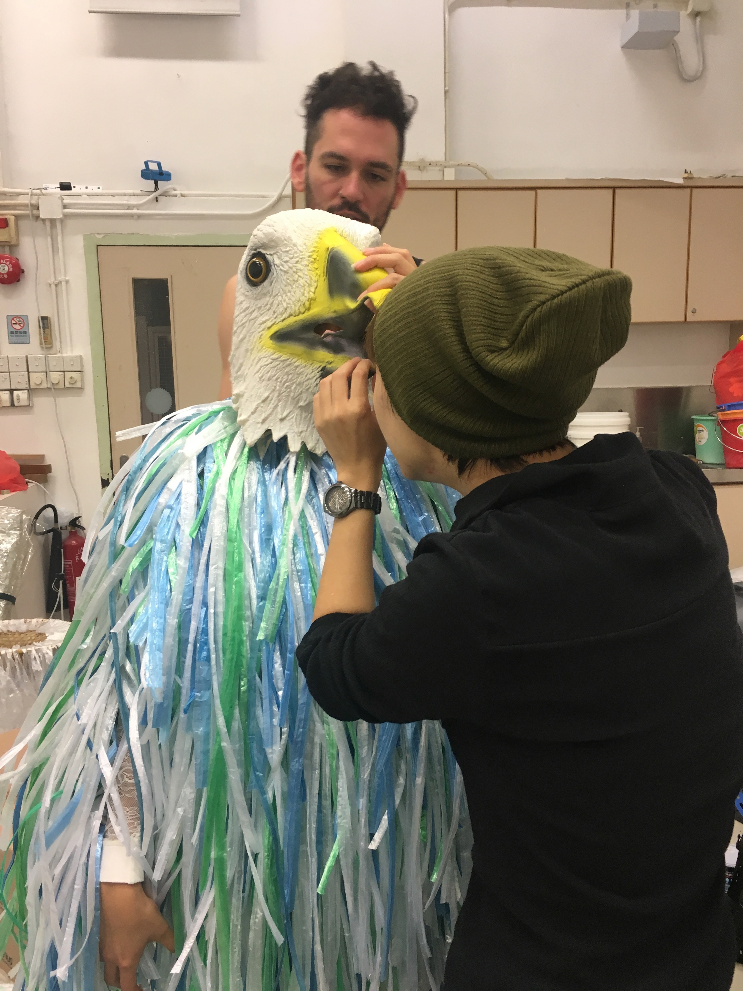 Animal totems: Use of fabrics, plastics, animal masks and costumes which allow different morphologies to embody a mix of genders, race, class and humanoids with “nonhuman animals”.