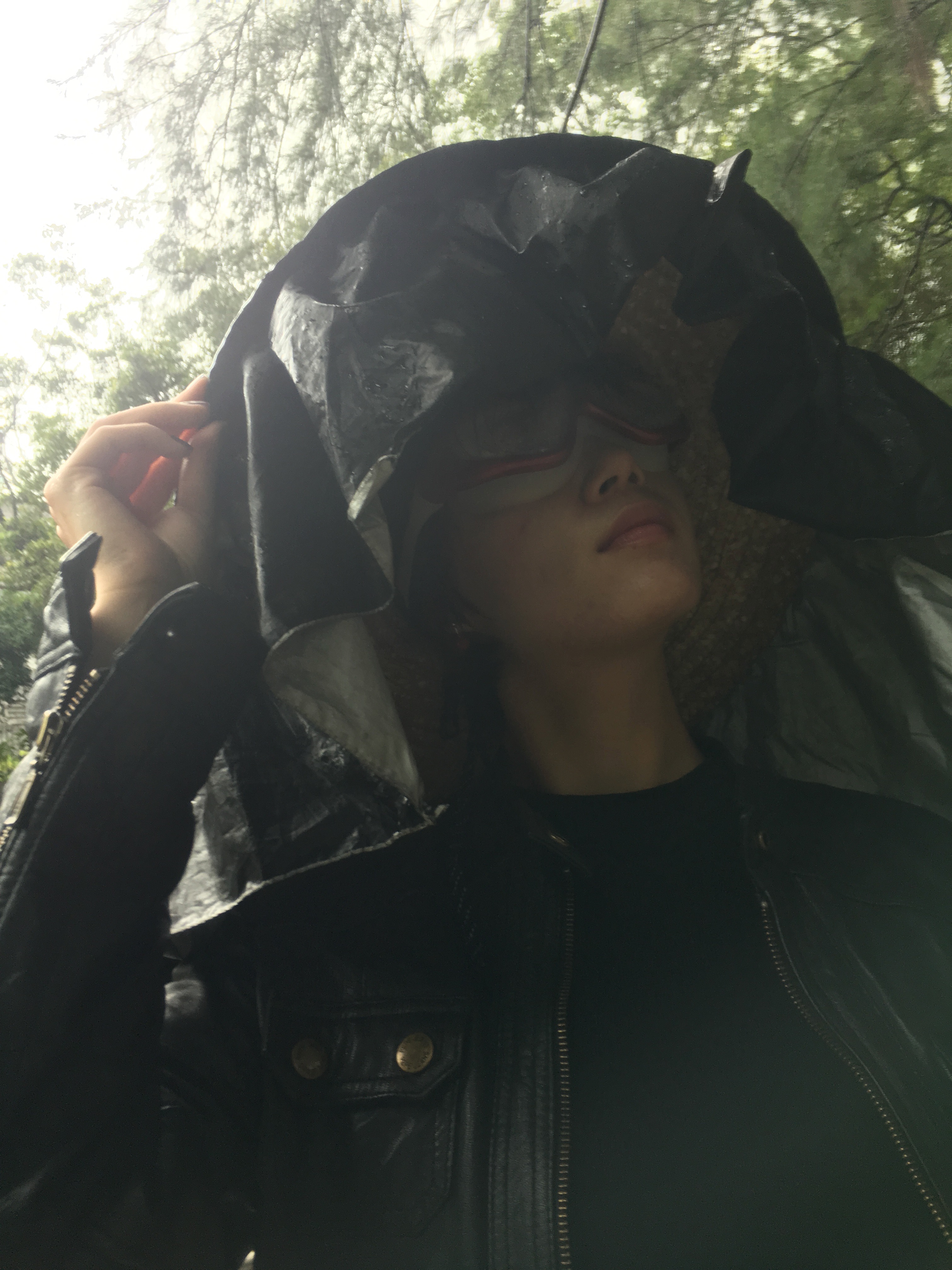 We got inspired by raincoat as a second skin and bamboo hat.