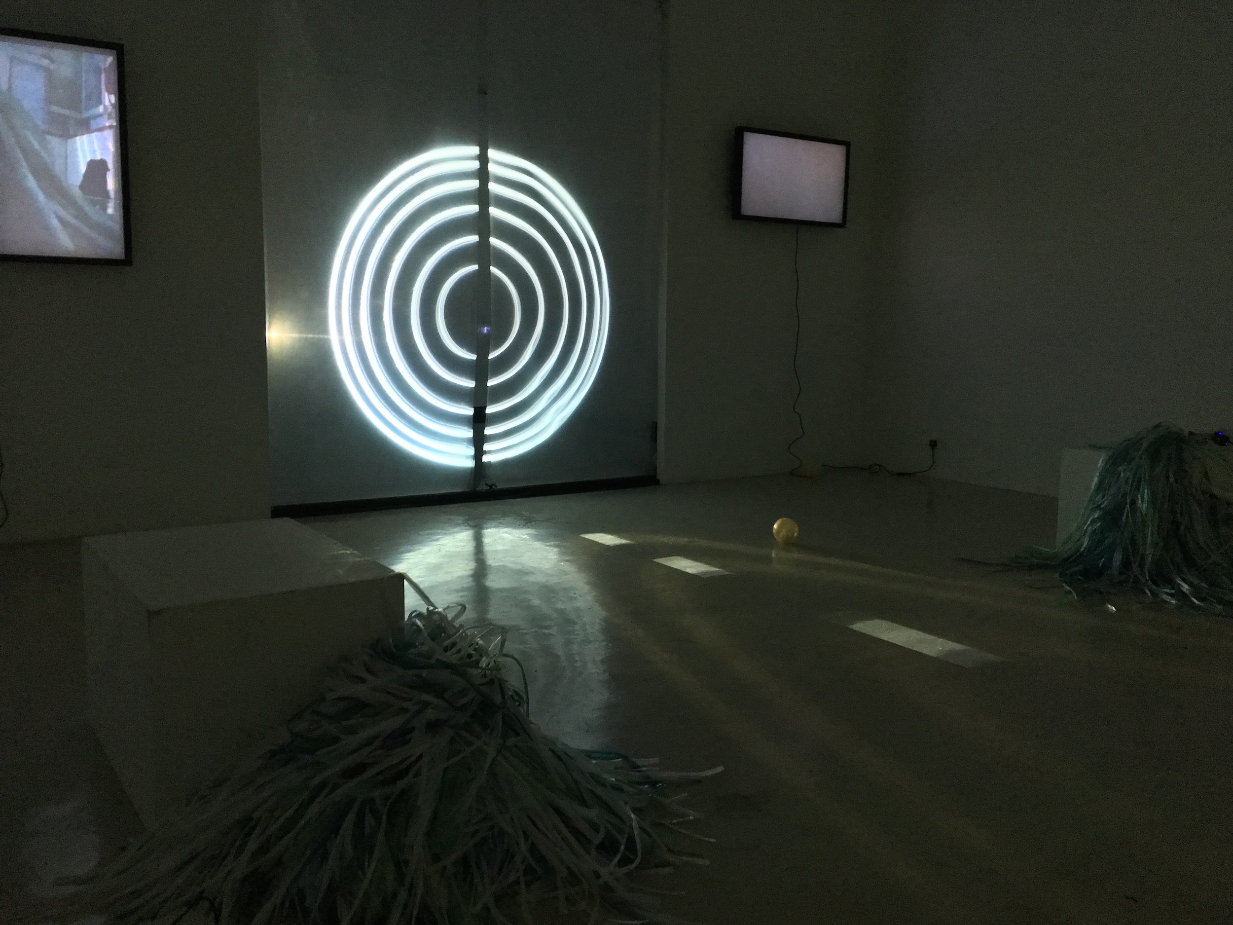 Sound: audio recordings resulting from explorations combining texts, sound effects and closed circuit feedbacks to contextualise in a “spaceless/timeless” area.