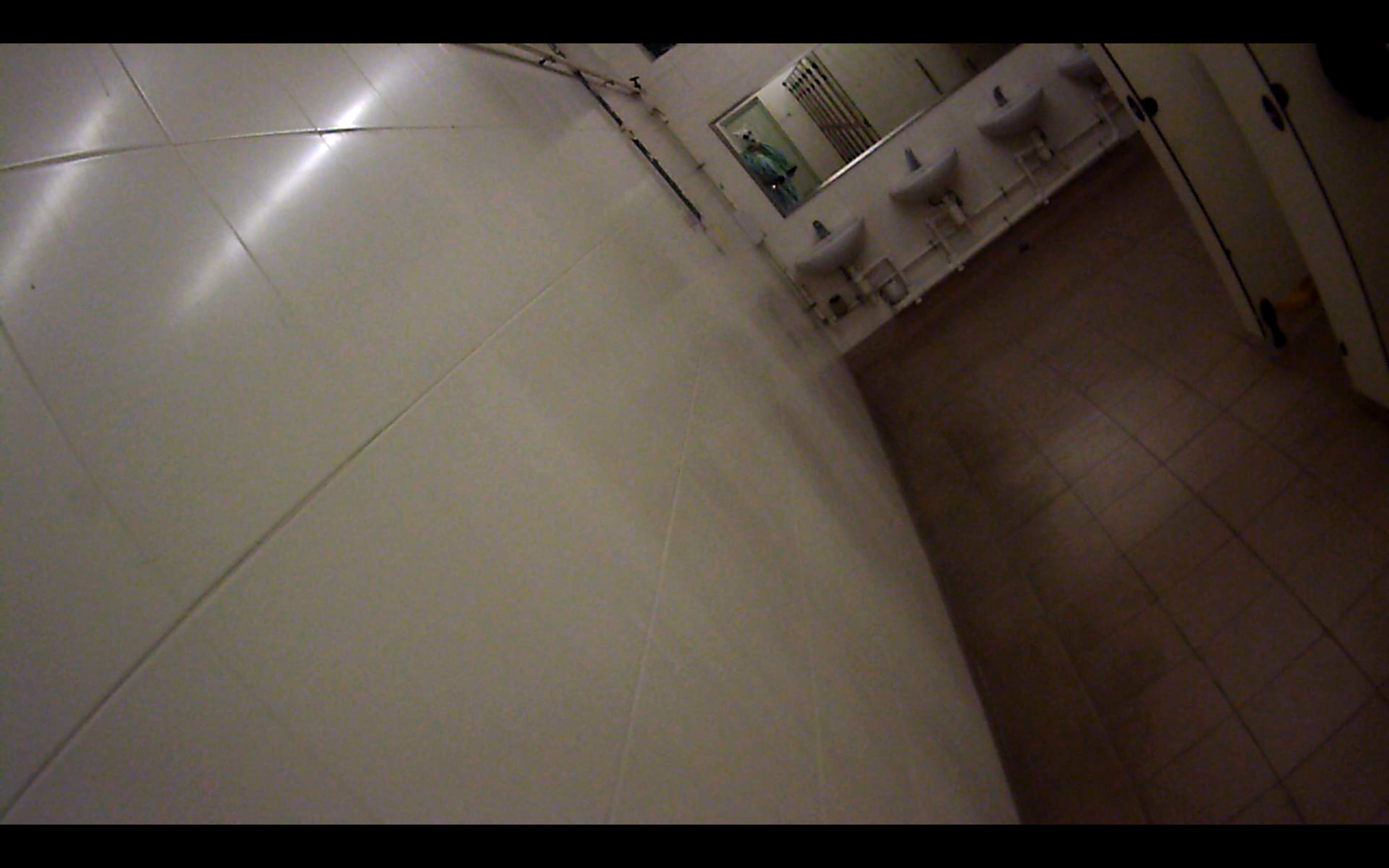 While the ceremony starts in the back space and the audience is waiting in the front, they hear already a loud noise coming from to white boxes on the floor. Additionally two guardians with deformed eagle and wolf mask are waiting for their part. A wifi-camera attached to each of their heads show via two mounted screens the procedure from another view. It is a repetition of the mirror situation produced in watered layer on the ground of the backspace, going through the digital networks of invisibility: observing the observing. Slowly they descend from their platforms consisting of the every-day installations of a kitchen which is originally part of the room.