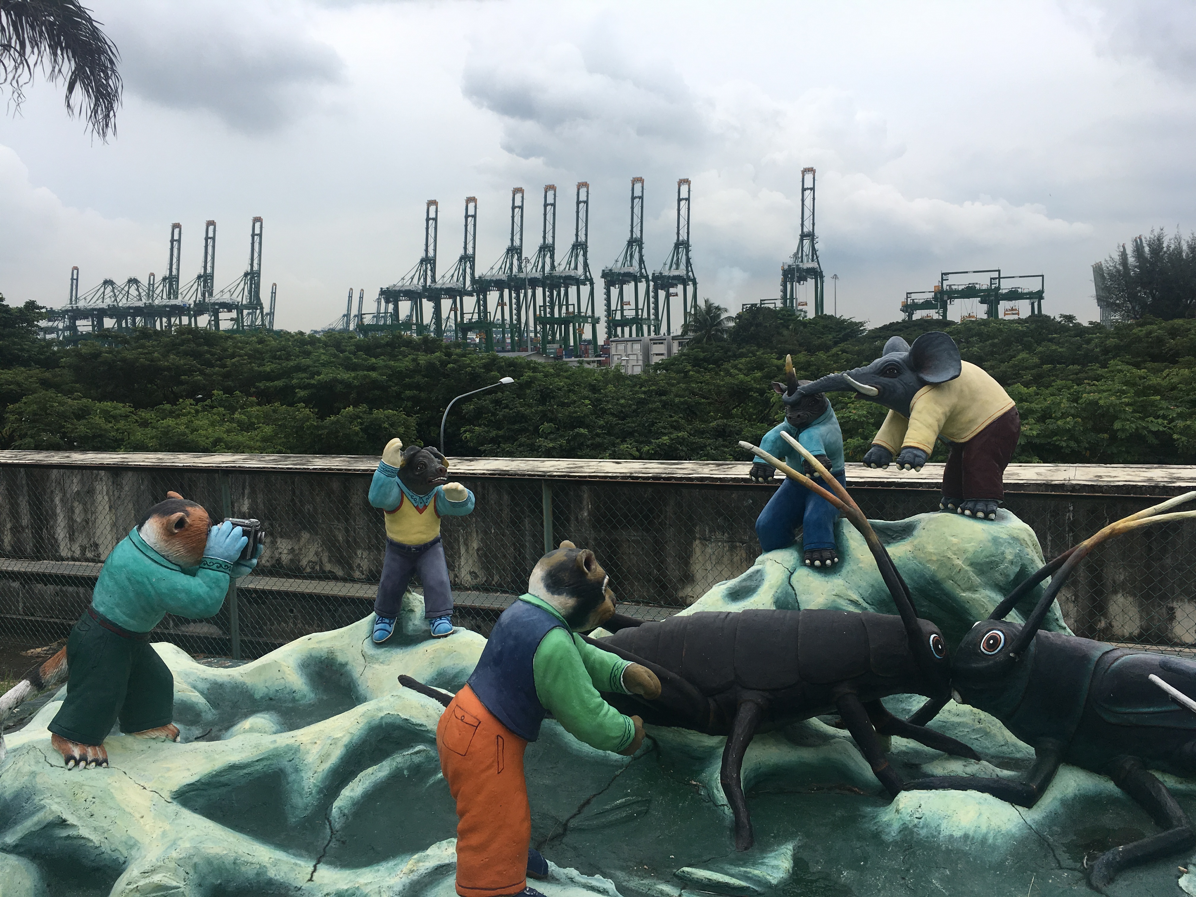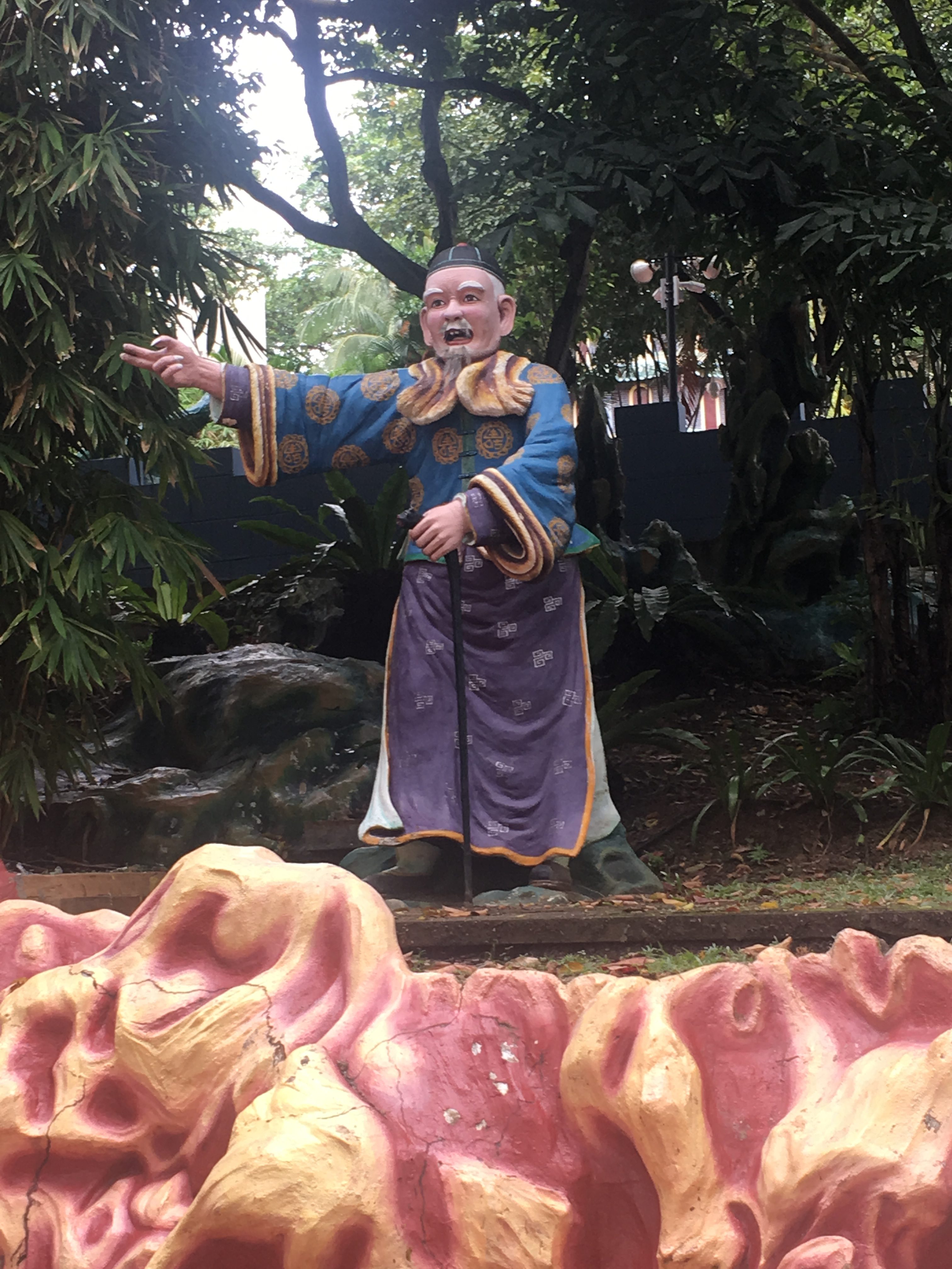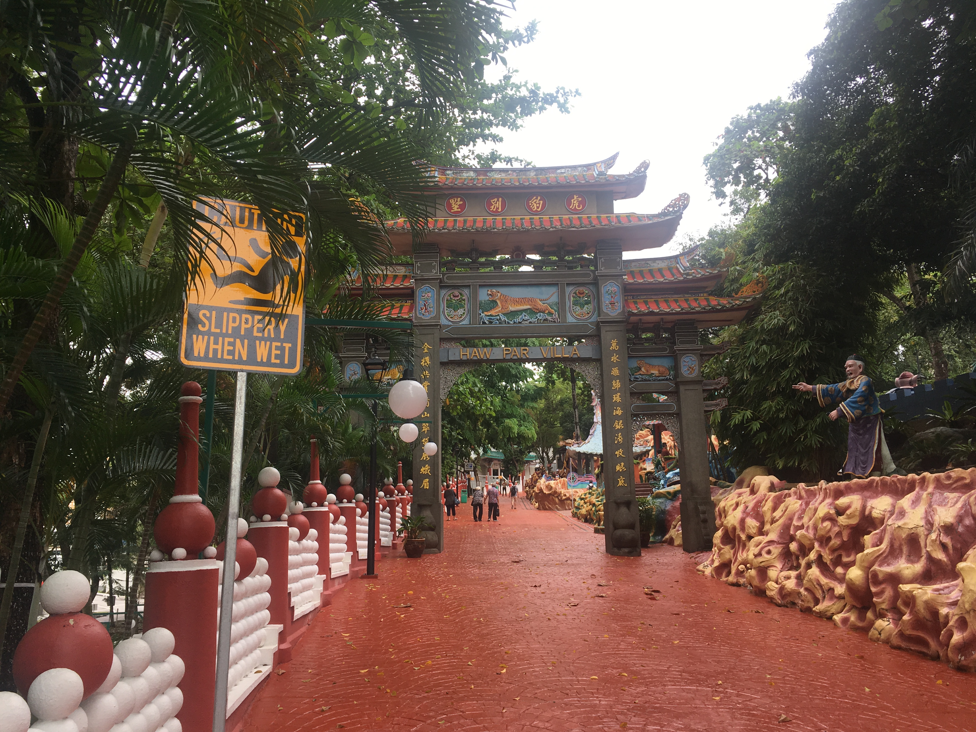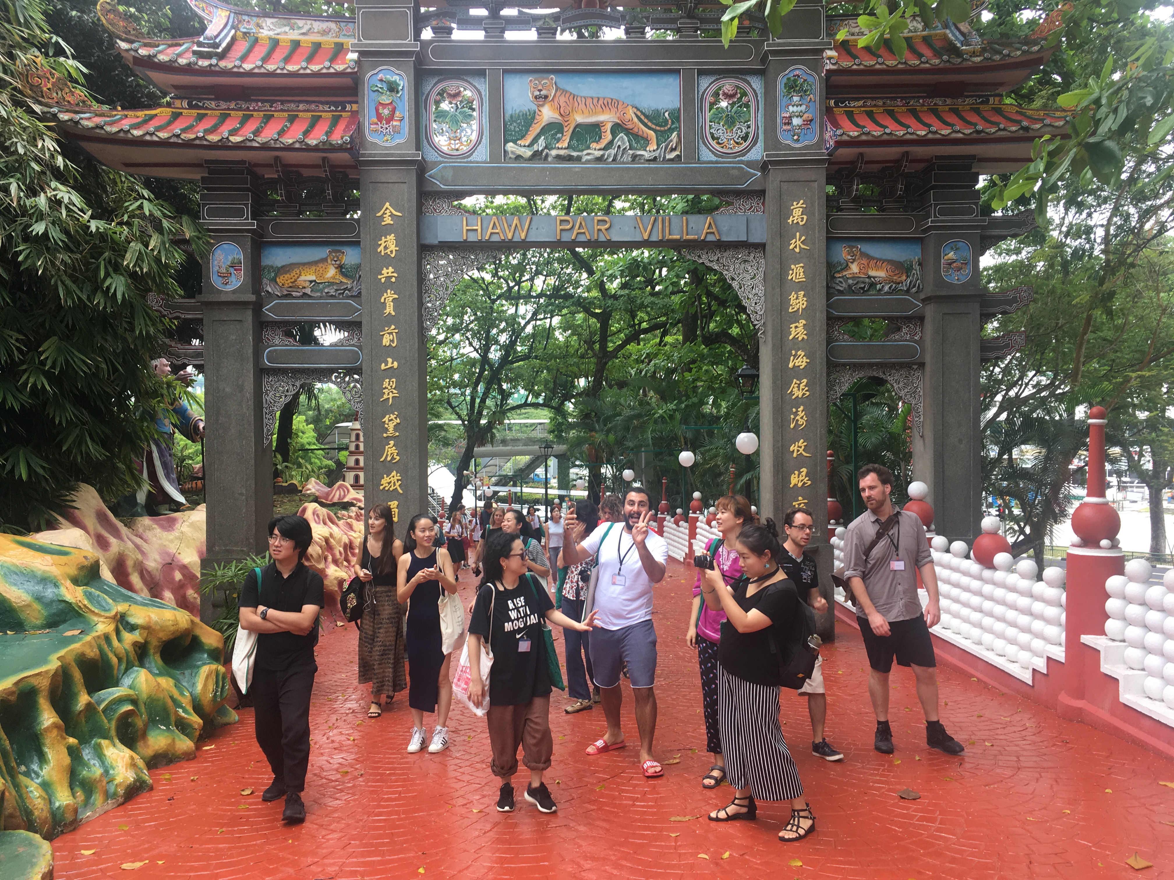 Day 2 of the Arts & Culture tour was diverse. Folkore, contemporary art and a party all played a role. The first stop was Haw Par Villa, detached from Singapore’s centre by a short bus ride. Haw Par Villa is a themepark that was build in the 1930s and contains over 1,000 statues and 150 giant dioramas depicting scenes from Chinese mythology, folklore, legends, history, and illustrations of various aspects of Confucianism. The best known attraction in Haw Par Villa is the Ten Courts of Hell, which features gruesome depictions of Hell in Chinese mythology and Buddhism.