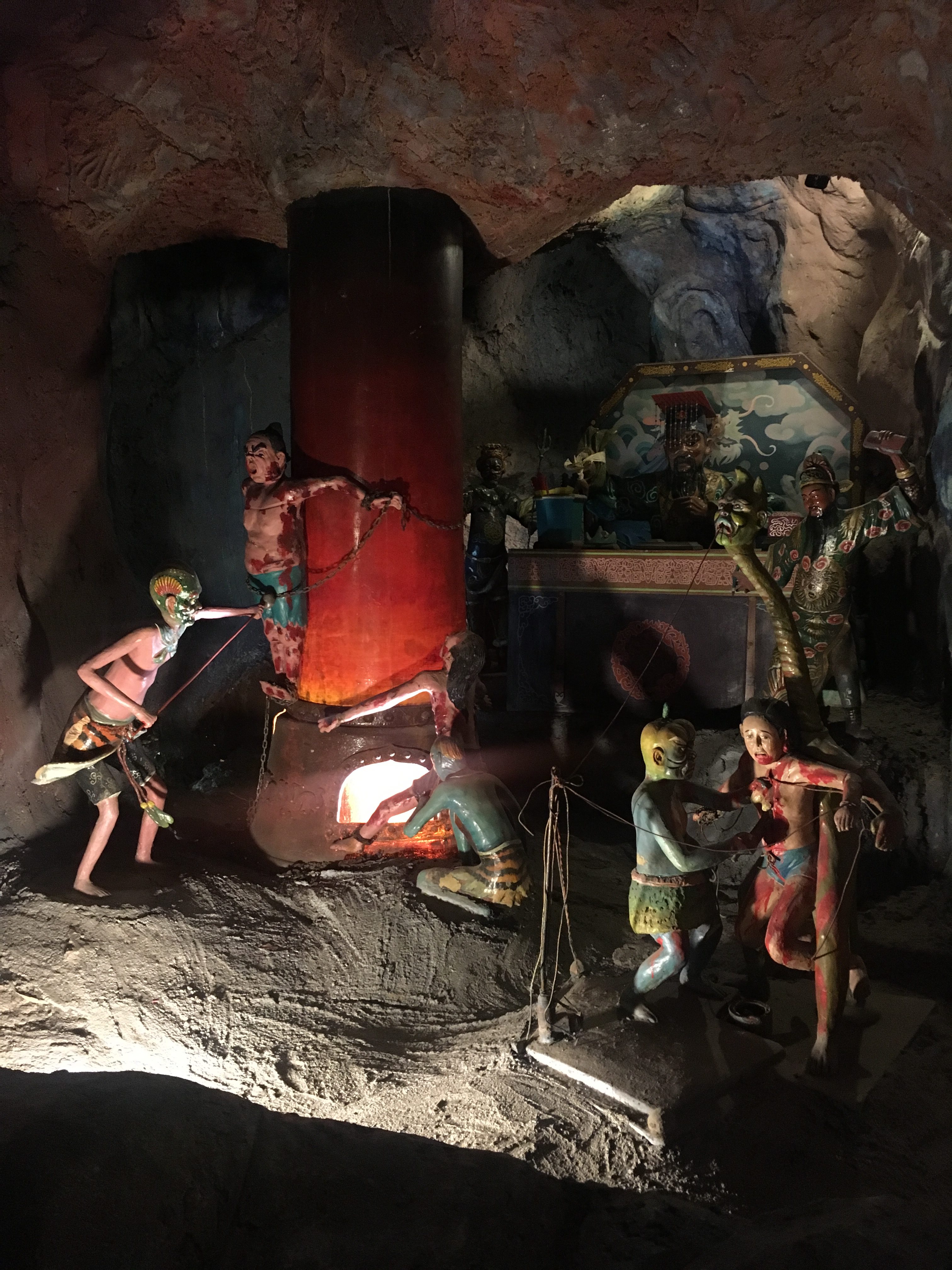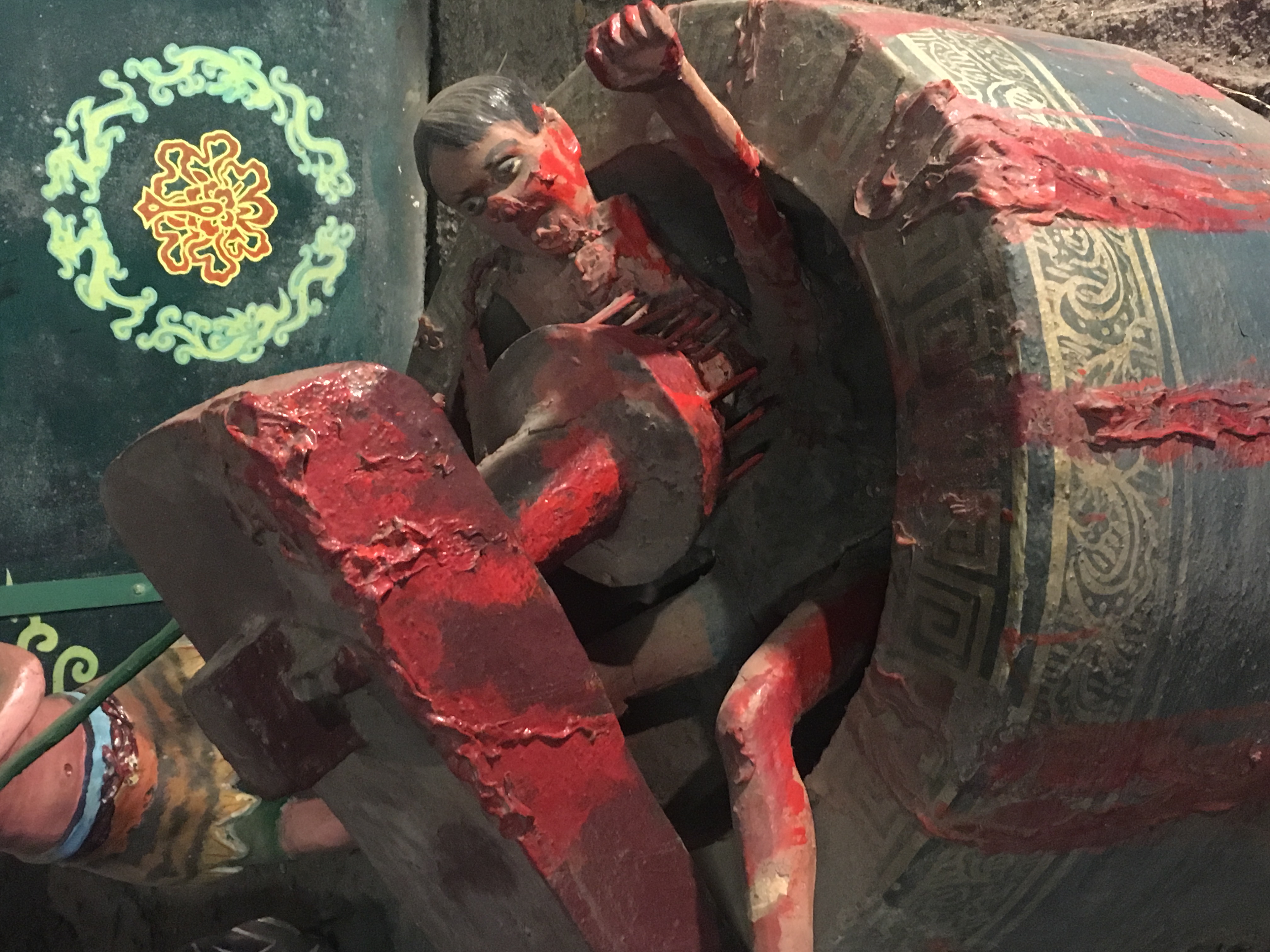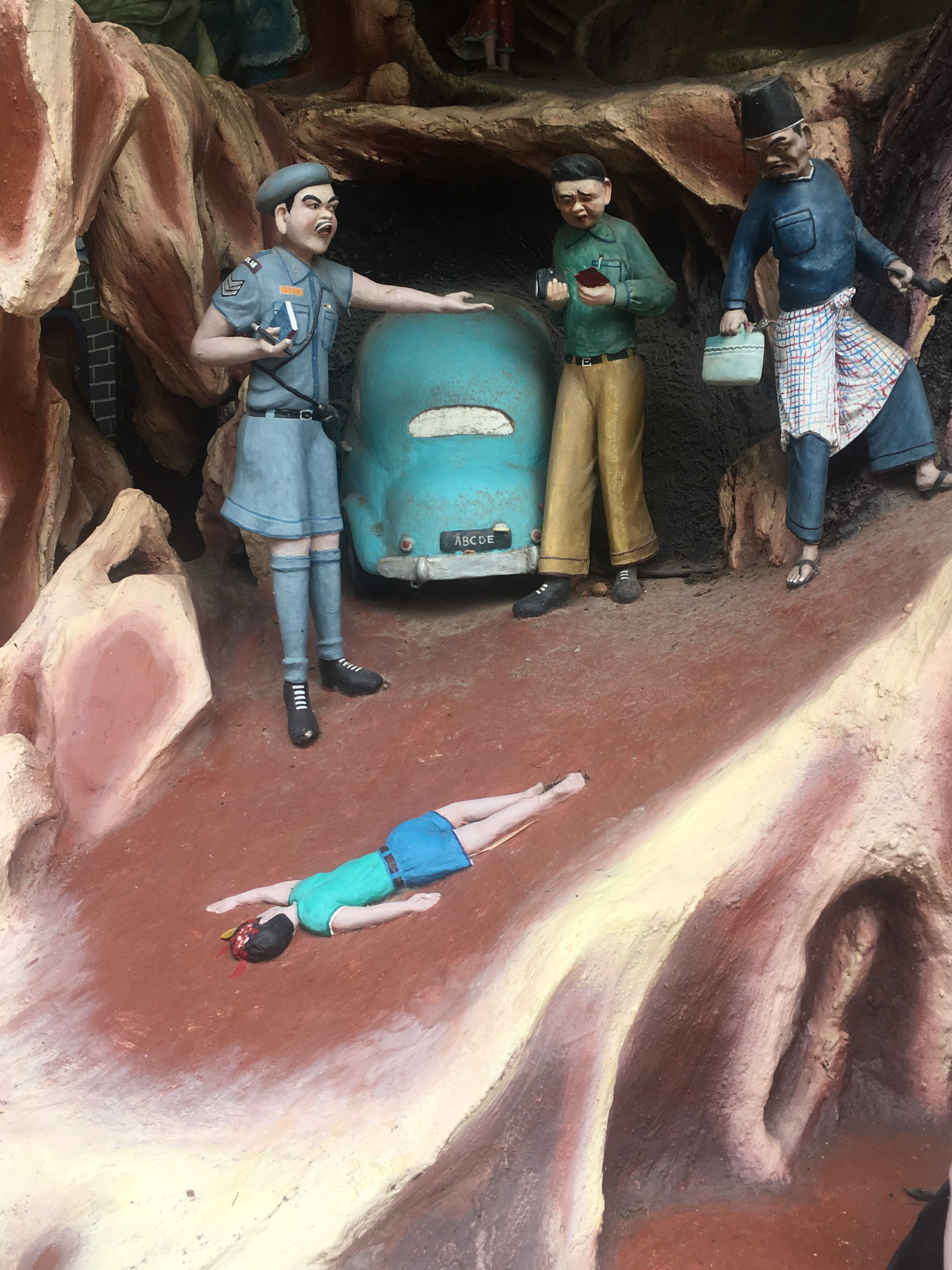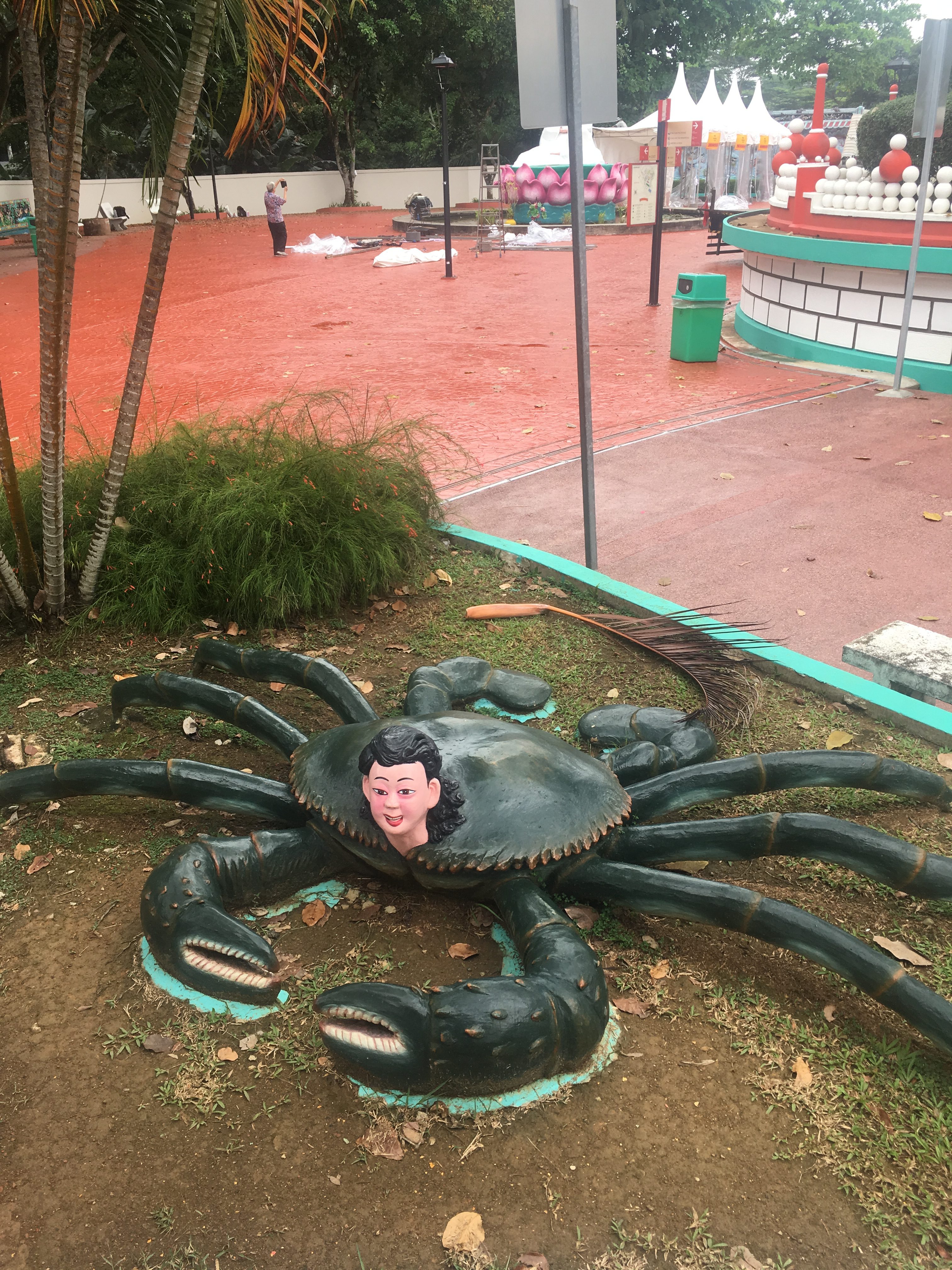 Day 2 of the Arts & Culture tour was diverse. Folkore, contemporary art and a party all played a role. The first stop was Haw Par Villa, detached from Singapore’s centre by a short bus ride. Haw Par Villa is a themepark that was build in the 1930s and contains over 1,000 statues and 150 giant dioramas depicting scenes from Chinese mythology, folklore, legends, history, and illustrations of various aspects of Confucianism. The best known attraction in Haw Par Villa is the Ten Courts of Hell, which features gruesome depictions of Hell in Chinese mythology and Buddhism.